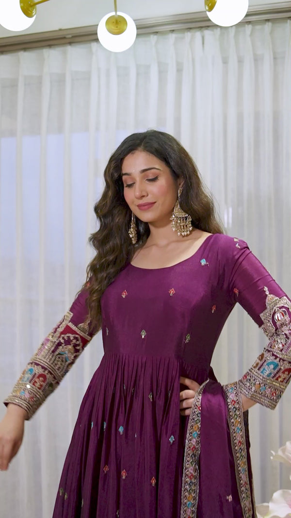 Tulip Wine Designer Cinon Silk Anarkali Suit Set